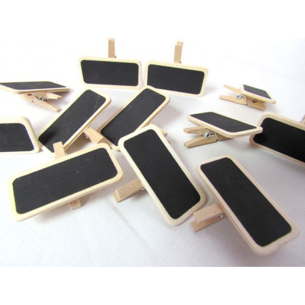 Marque place avec mini ardoise sur pince à linge, pouvant être accrochés sur de nombreux supports.