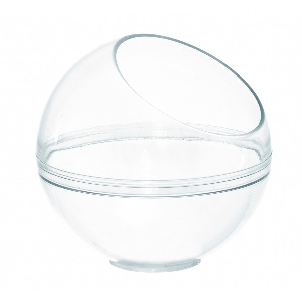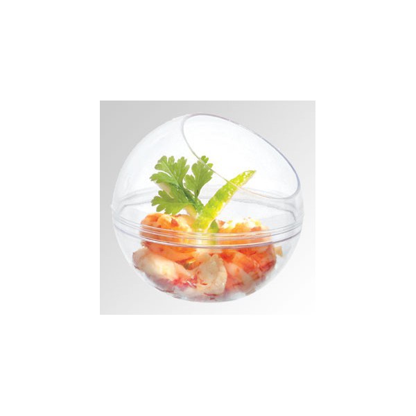 Verrine jetable sphérique, avec ouverture inclinée, facilitant la dégustation de vos entrées, apéritifs ou désserts.