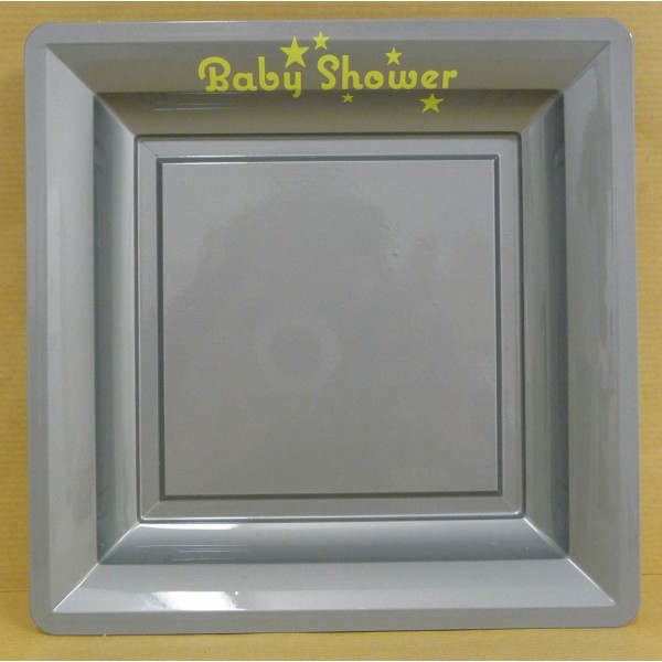 La dimension de l'assiette plastique est de 23x23cm, vendue par pack de 50 assiettes jetables personnalisées.